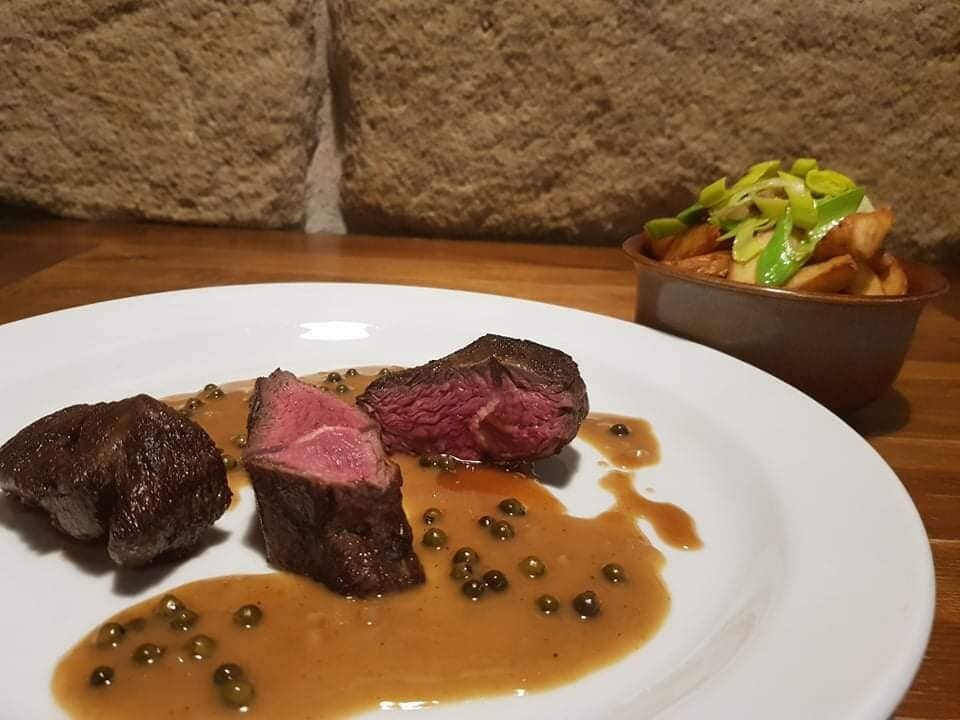 | 150g | Pikantní řezanka z vepřové panenky (feferonky, paprika, pórek, žampióny) | 225,- | |
