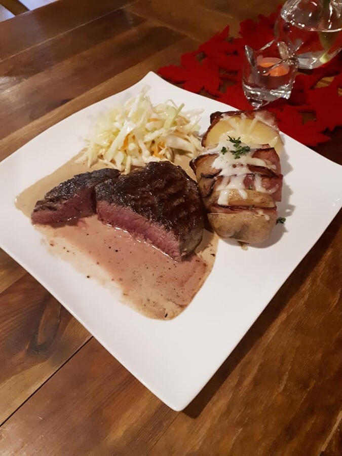 | 150g | Zapečený vepřový steak se šunkou a sýrem 7 | 205,- | |